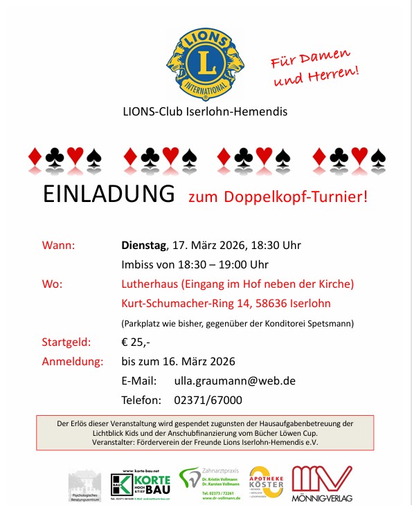 Doppelkopfturnier für Damen und Herren am 17.03.2026